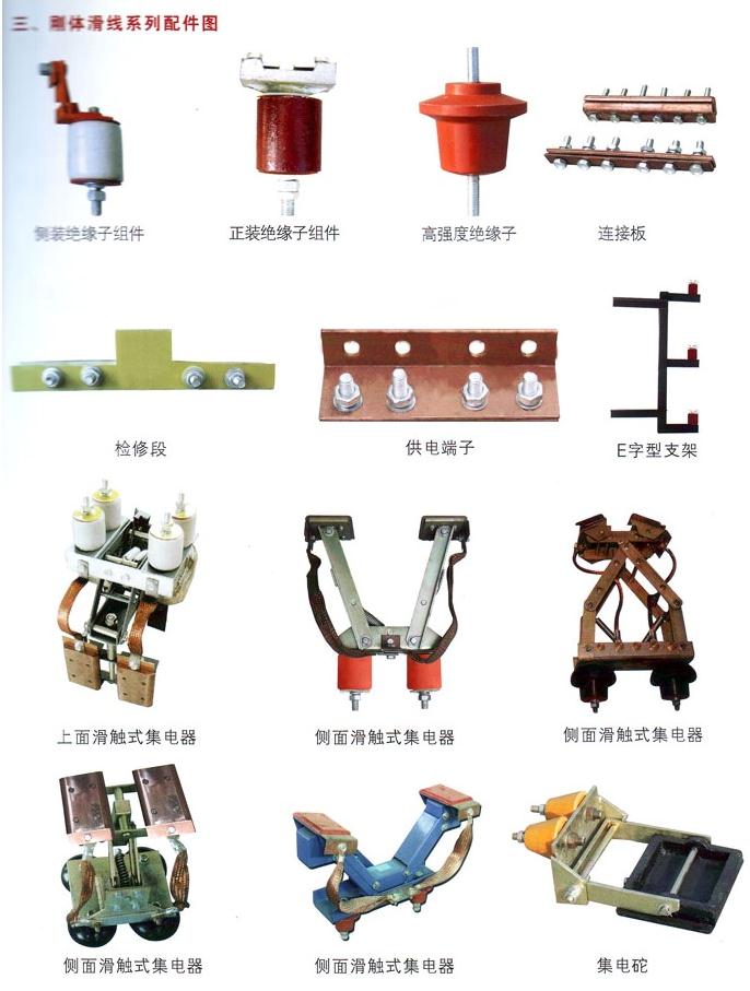 剛體滑觸線由梯形銅導(dǎo)軌、槽型鋼架,絕緣氣組件以及外置電器等組件組合而成。由于該產(chǎn)品具有電載流量大,耐高溫、抗腐蝕的特點,因此被冶金、造船、港口等廣泛應(yīng)用。