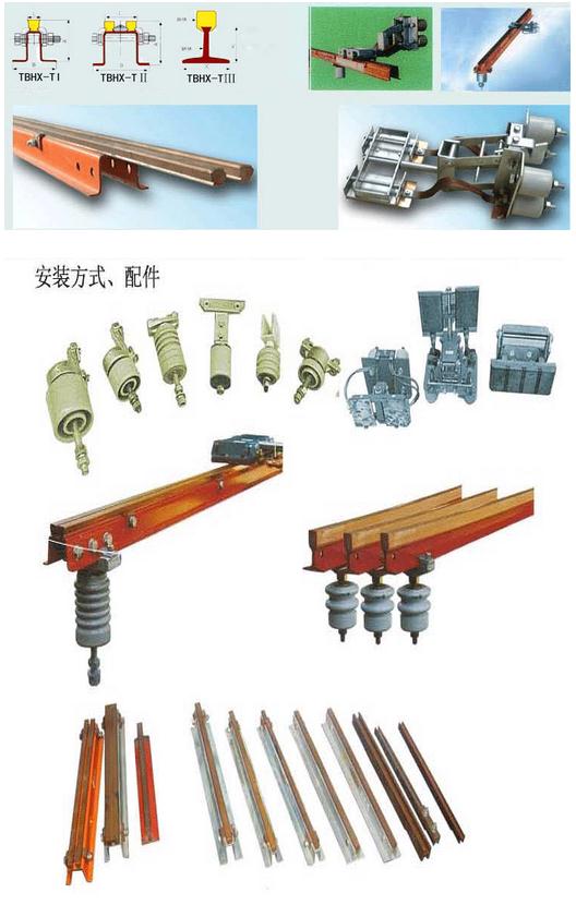 JGHX-T、JGHX-TⅡ、JGHX-TⅢ系列鋼體滑線由銅導(dǎo)軌、導(dǎo)軌支架、絕緣子組件以及外置式集電器等組件組合而成,由于該產(chǎn)品具有電流大、耐高溫、抗腐蝕等特點(diǎn),因此廣泛應(yīng)用于冶金、造船、港口等行業(yè).